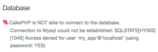 Permitir que o CakePHP acesse o banco de dados MySQL